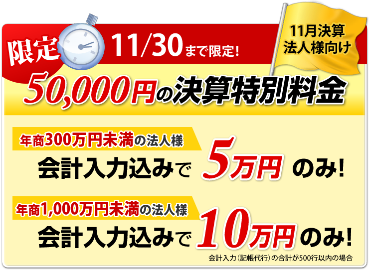 *合計500行以上の入力(記帳代行)がある場合や、消費税申告料金がある場合には、別途追加料金がかかります。