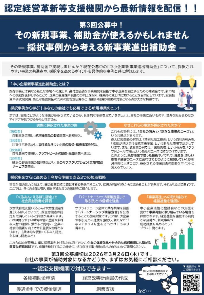 新事業進出補助金 第3回公募