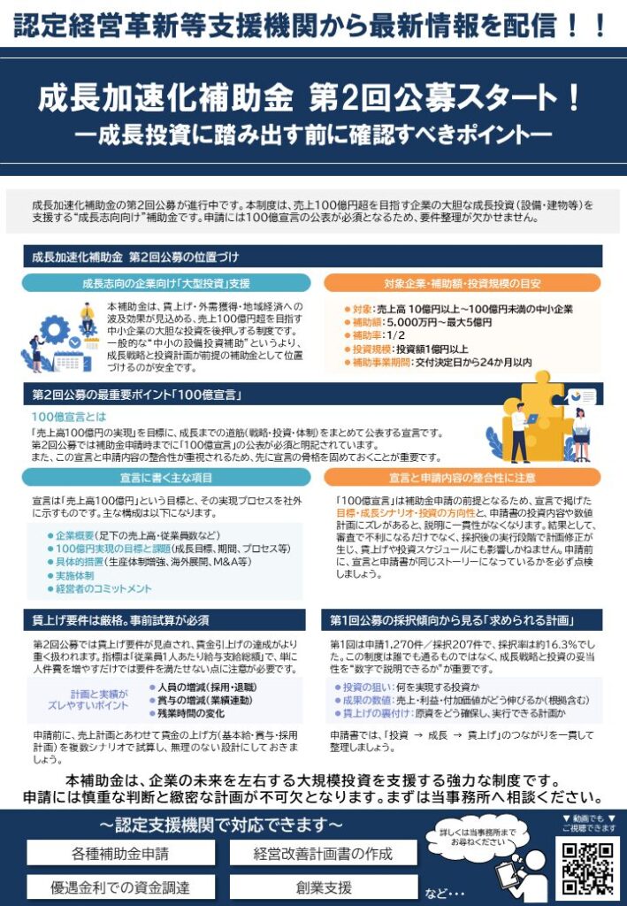 成長加速化補助金 第2回公募スタート